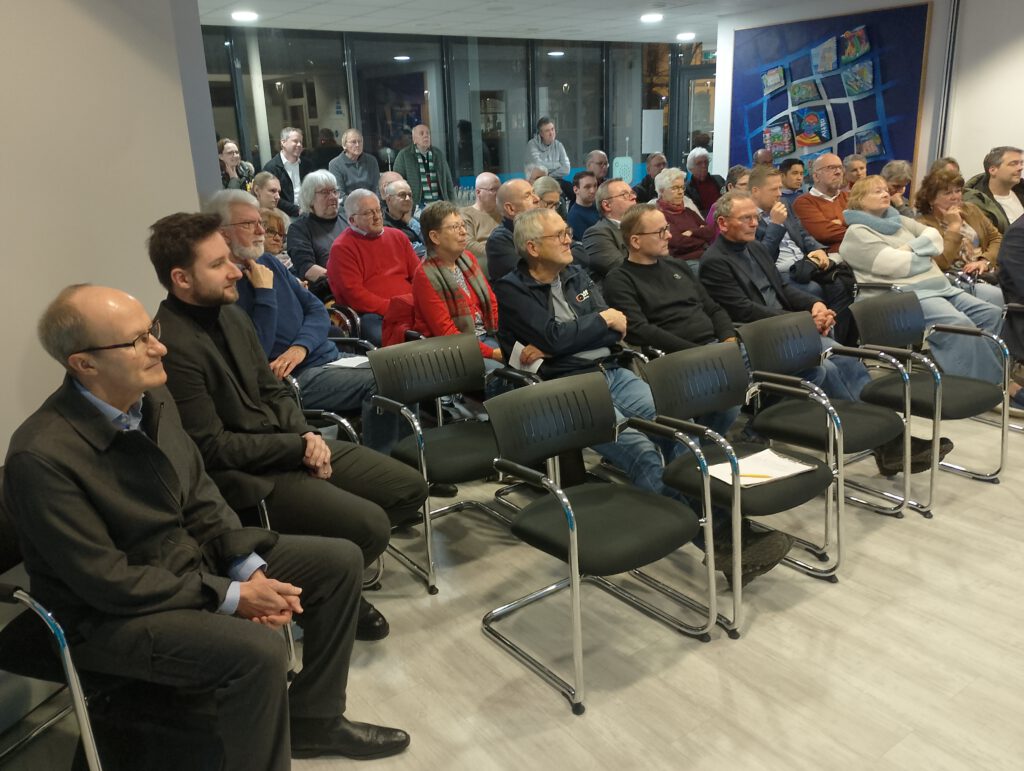 Und das war sehr zufriedenstellend: ca. 50 Besucherinnen und Besucher waren gekommen; darunter „einfache Bürger“, aber auch die Spitzen der Verwaltung. Alle Ratsfraktionen waren mit je mehreren ihrer bekannten Protagonisten vertreten; aus der heimischen Wirtschaft waren Top-Repräsentanten der IHK, der Dehoga und der HMT gekommen.